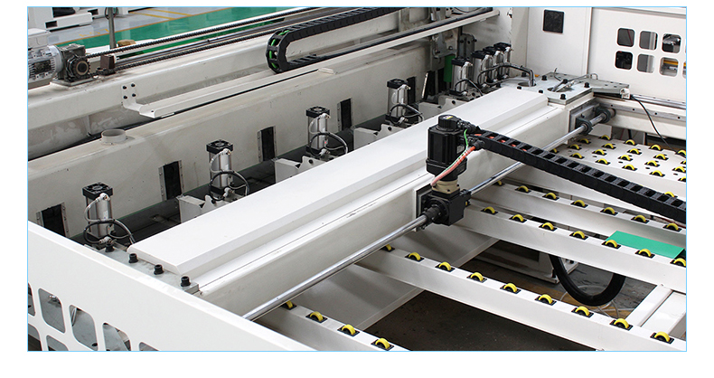 ◆進料區(qū)采用氣動浮珠臺面,防止板材表面劃傷,減輕上料勞動強度;