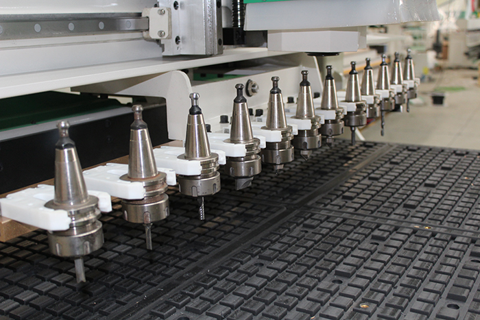 直排鉆包加工中心,是一款既能夠?qū)崿F(xiàn)定制家具生產(chǎn)又能實(shí)現(xiàn)櫥柜門板銑形、雕刻的數(shù)控設(shè)備,機(jī)器搭配的自動換刀主軸,能夠進(jìn)行高速切割和門形雕刻,搭配的9垂直排鉆組能夠快速鉆孔,提高定制家具的生產(chǎn)效率。此款機(jī)型性價比高,復(fù)合加工能力強(qiáng),是絕大部分家具廠首選機(jī)型。