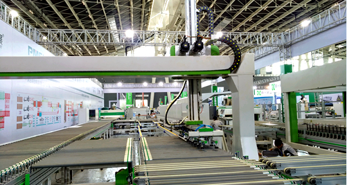 現(xiàn)在又發(fā)展為工業(yè)4.0,主要是以無人化工廠為主,打造工業(yè)4.0生產(chǎn)連線,把開料、封邊、鉆孔、分揀、包裝等流程一體化,從而實(shí)現(xiàn)無人式的工廠生產(chǎn)模式。整套定制家具工業(yè)4.0硬件部分涵蓋開料設(shè)備,多軸搬運(yùn)機(jī)器人、封邊回轉(zhuǎn)線系統(tǒng),動(dòng)力傳輸線、龍門抓料機(jī)、六面鉆打孔設(shè)備,自動(dòng)分揀系統(tǒng)等通過總控系統(tǒng)與智能軟件控制實(shí)現(xiàn)自動(dòng)化生產(chǎn)。