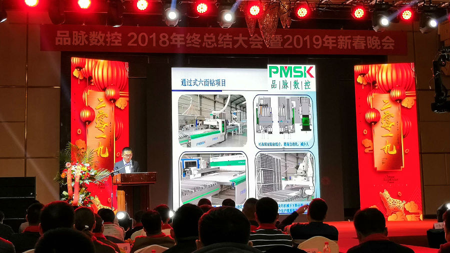 研發(fā)部李亮總工做工作匯報(bào),2018年品脈數(shù)控有實(shí)木五軸加工中心、實(shí)木開料機(jī)、通過式六面鉆等新產(chǎn)品面世,并作出2019年的研發(fā)規(guī)劃。