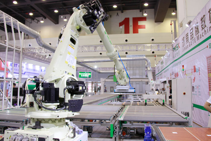 1. 先進(jìn)的智能化產(chǎn)線配套著完善的廠內(nèi)物流體系及設(shè)備。生產(chǎn)完工后,家具的輸送、倉儲(chǔ)、發(fā)運(yùn)的自動(dòng)化、智能化,也是未來工廠不可或缺的重要組成部分。3、智能板件分揀系統(tǒng),硬件采用目前最流行的六軸工業(yè)機(jī)器人,軟件為自主研發(fā)的線控系統(tǒng),能連續(xù)且大批量地按訂單智能分揀板件。4、智能包裝系統(tǒng),由于定制家具的板件大小不一,包裝一直是家具生產(chǎn)企業(yè)的痛點(diǎn)。未來工廠采用高效的算法,合理組合包裝,自動(dòng)分揀,機(jī)器人自動(dòng)堆垛。